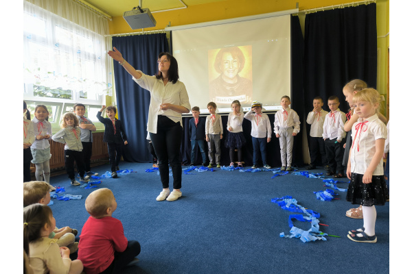 Uroczystość z okazji Dnia Patrona w naszym Przedszkolu była wyjątkowym wydarzeniem, podczas którego dzieci miały okazję bliżej poznać twórczość i postać Wandy Chotomskiej. Przedszkolaki z grupy VI zaprezentowały wiersze, piosenki oraz krótkie scenki inspirowane jej utworami, wprowadzając wszystkich w radosny, pełen humoru świat literatury dziecięcej.