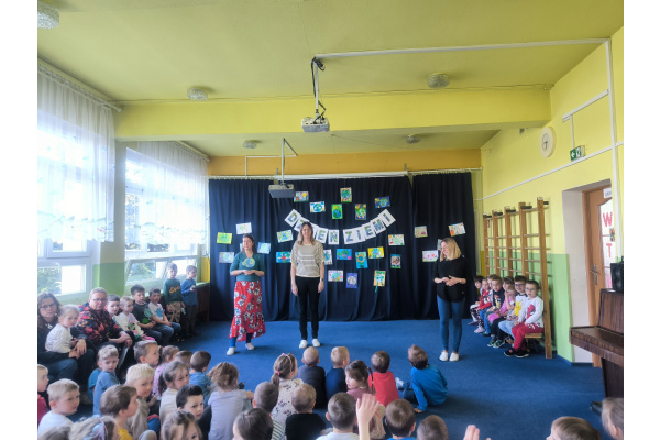 Dzień Ziemi, znany też jako Światowy Dzień Ziemi lub Międzynarodowy Dzień Ziemi – akcje prowadzone corocznie wiosną, których celem jest promowanie postaw proekologicznych w społeczeństwie. Dzisiejsza uroczystość ma na celu uwrażliwienie dzieci na potrzebę dbania o środowisko naturalne. Z tej okazji grupa III wraz ze swoimi Paniami, a także z Panią Anią z grupy I oraz Panią Anią z grupy IV, przygotowała krótkie przedstawienie.