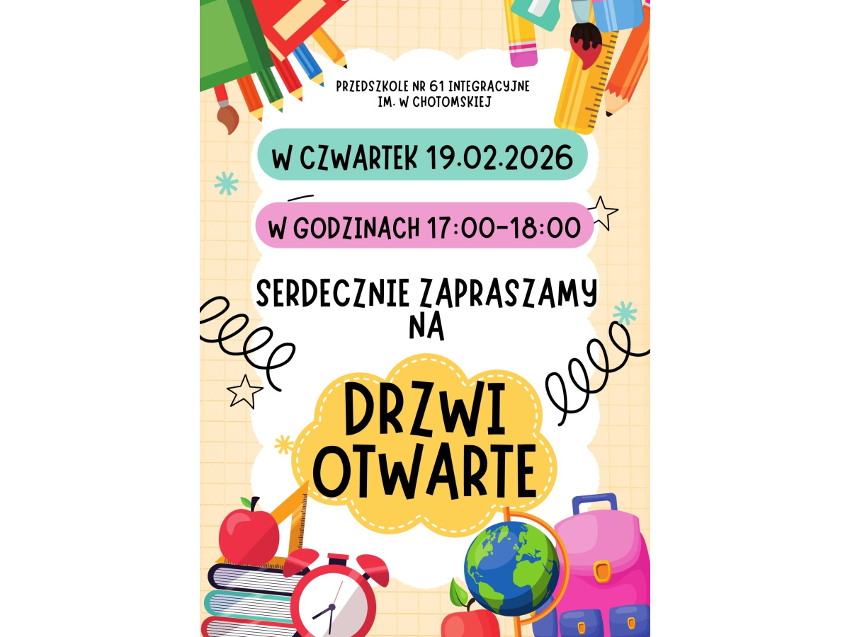 Serdecznie zapraszamy na Drzwi otwarte do naszego Przedszkola! Spotkanie dla Rodziców wraz z dziećmi odbędzie się 19.02.2026r (czwartek) o godzinie 17:00.