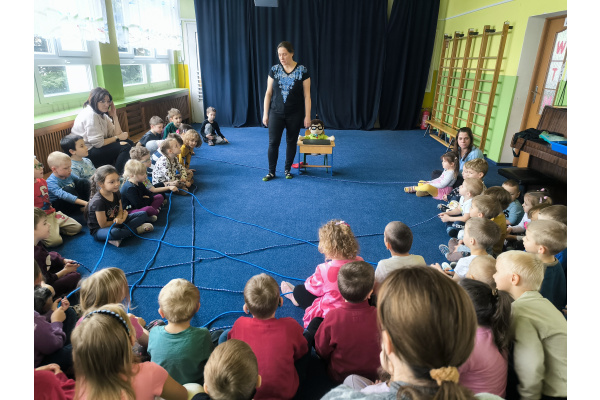 Dziś spotkaliśmy się wszyscy razem na holu by wysłuchać historii o naszym wspaniałym mieście Bydgoszczy.
