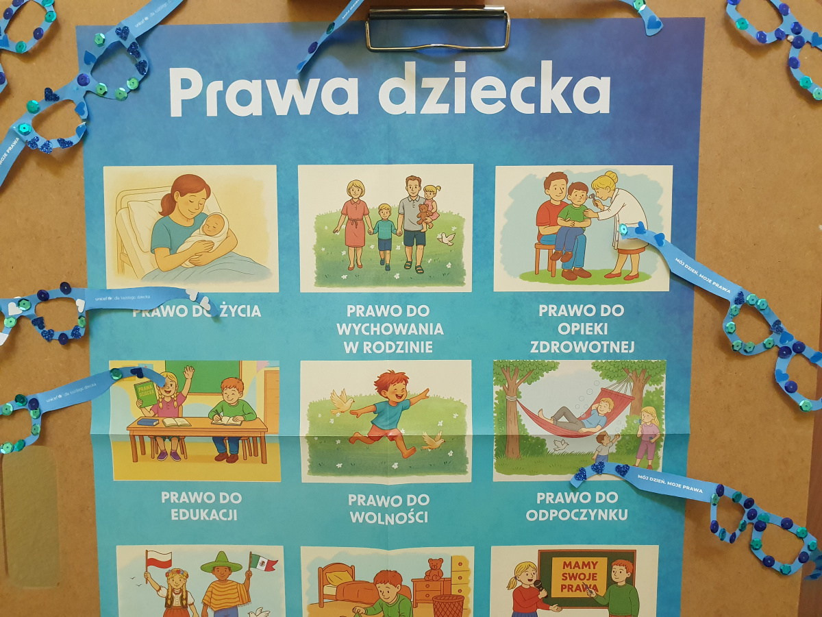 Poprzez projekt „Mój dzień. Moje prawa” wspólnie świętowaliśmy Międzynarodowy Dzień Praw Dziecka. Obserwowaliśmy otaczającą nas rzeczywistość oczami dzieci, aby lepiej zrozumieć, jak doświadczają swoich praw na co dzień i jak możemy ich wspierać. Przedszkolaki stworzyły niebieskie okulary i wybraliśmy się na poszukiwanie praw dziecka w wierszu, piosence oraz podczas różnego rodzaju zabaw i zagadek. Każde dziecko każdego dnia jest chronione i wspierane w rozwoju przez zestaw specjalnych praw. Styka się z nimi nieustannie – w domu, w szkole, na podwórku, na ulicy, w relacjach z innymi oraz w czasie wolnym. My, dorośli, mamy ogromny wpływ na to, jak dzieci przeżywają te prawa i jak ich doświadczają.