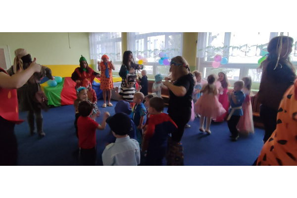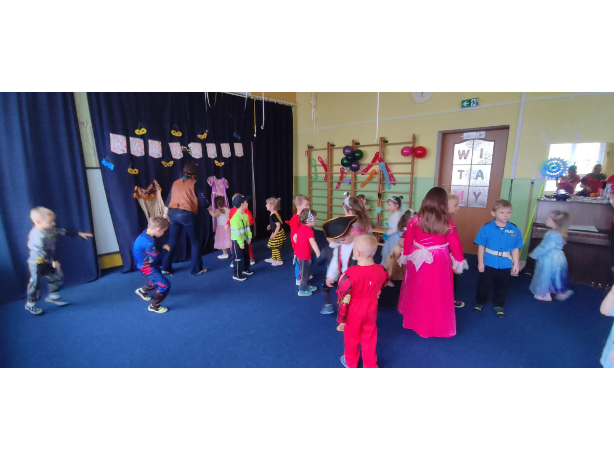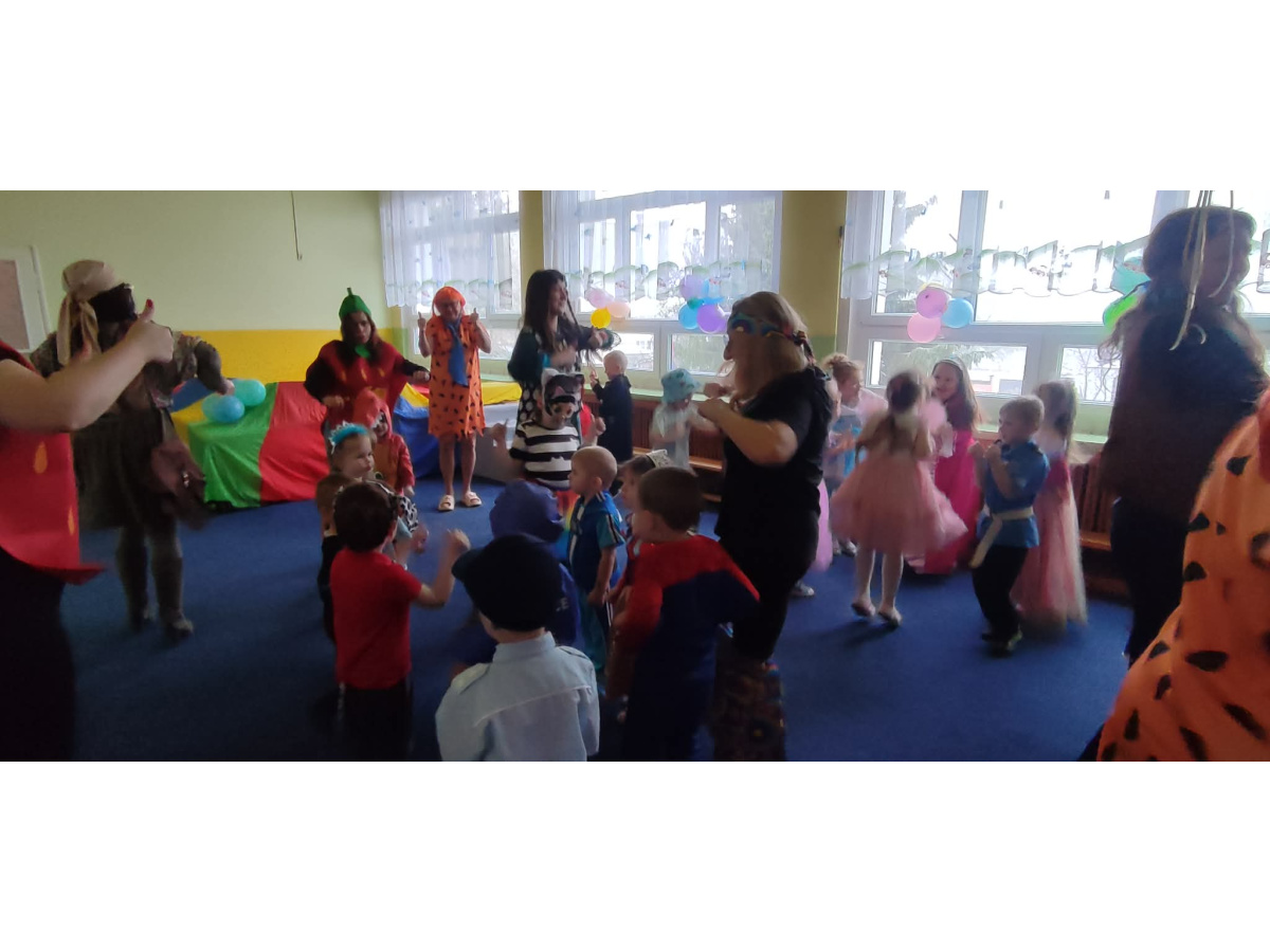 Kolorowe stroje, bajeczny wystrój i skoczna muzyka- w takiej atmosferze bawiły się przedszkolaki podczas Balu Karnawałowego w przedszkolu.